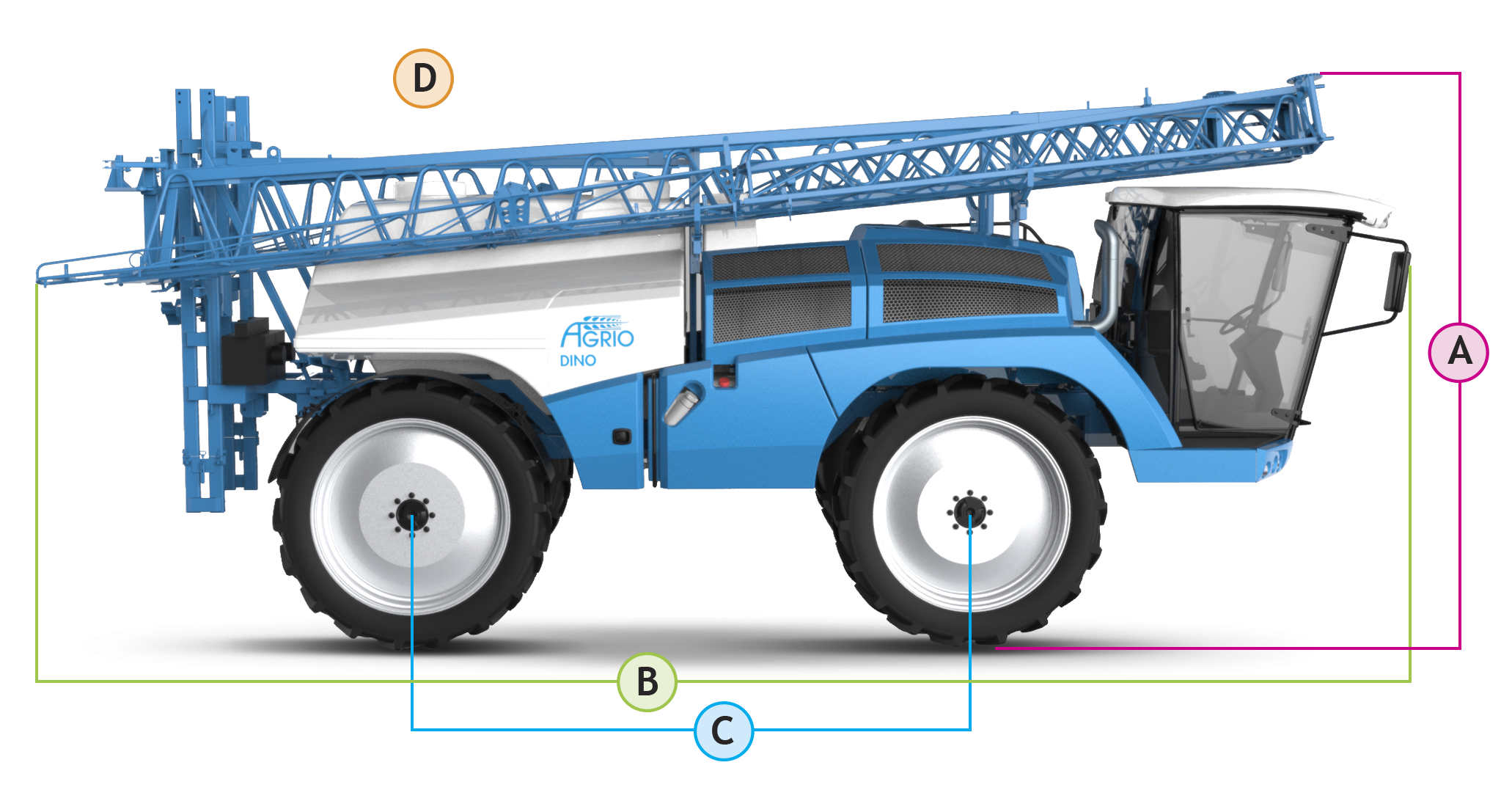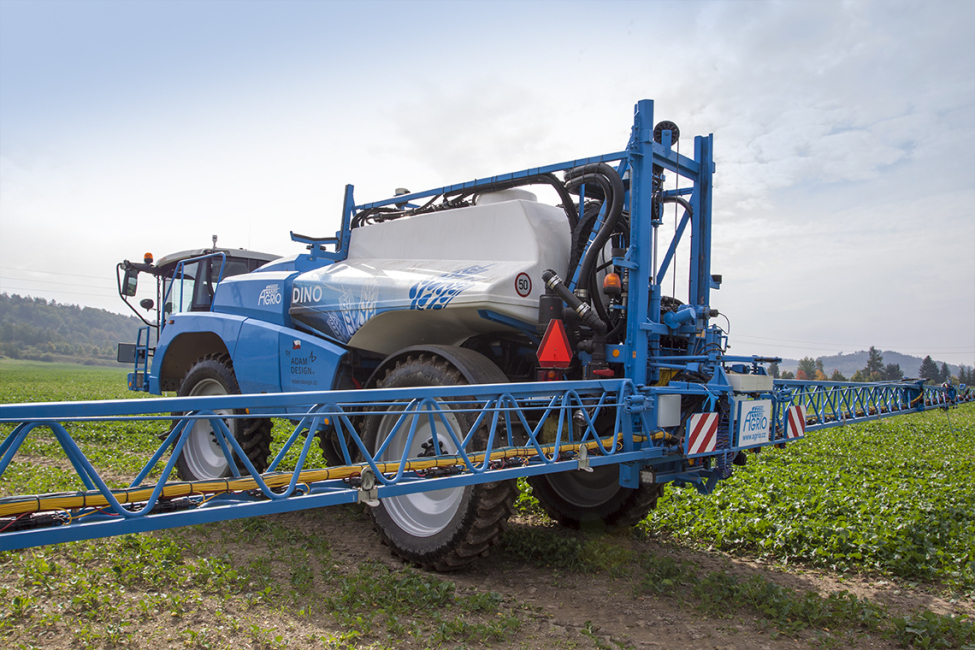 A 6600 literes tartállyal rendelkező DINO önjáró permetezőgépet alacsony tömegközéppont és nagy hasmagasság jellemzi. Még extrém lejtős területeken is verhetetlen menettulajdonságokkal rendelkezik. Az egyedülálló felfüggesztésnek és a differenciálzárral ellátott hidraulikus hajtásnak köszönhetően a DINO nemcsak meredek emelkedőkön képes felhajtani, de olyan pangóvizes területeken is át tud haladni, ahol más gépek elakadnának. A cserefelépítményes kivitelnek köszönhetően (permetező, műtrágyaszóró, talajjavító-anyag kijuttató) az alváz széleskörűen kihasználható.
