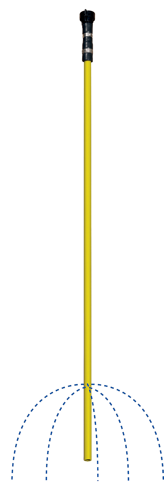 Tömlő felső adagolótárcsával és alsó ötlyukú elosztó fúvókával, amely 5 sugarat hoz létre. A permetezőgépen ezek a tömlők egymástól 50 cm-re vannak elhelyezve. Nagy cseppek jönnek létre, melyek nem maradnak meg a növényeken és könnyen a talajra folynak. Száraz időszakban hatékonyabbak az első típusnál. Másik előnye, hogy a nyílások, melyeken át a folyékony műtrágya kiürül, 10 cm-rel a tömlő vége fölött vannak. Ha az egyenetlen terep miatt a szórókeret meg van döntve, a tömlő eléri a talajt, de a fúvókák nem tömődnek el és a műtrágya egyenletesen ürül.