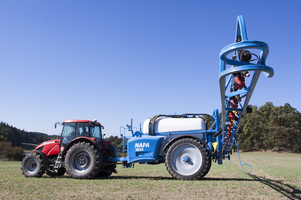 A 6600 literes tartállyal rendelkező DINO önjáró permetezőgépet alacsony tömegközéppont és nagy hasmagasság jellemzi. Még extrém lejtős területeken is verhetetlen menettulajdonságokkal rendelkezik. Az egyedülálló felfüggesztésnek és a differenciálzárral ellátott hidraulikus hajtásnak köszönhetően a DINO nemcsak meredek emelkedőkön képes felhajtani, de olyan pangóvizes területeken is át tud haladni, ahol más gépek elakadnának. A cserefelépítményes kivitelnek köszönhetően (permetező, műtrágyaszóró, talajjavító-anyag kijuttató) az alváz széleskörűen kihasználható.