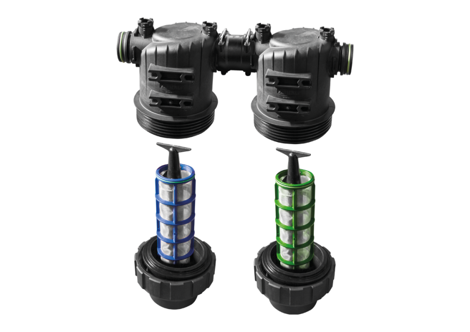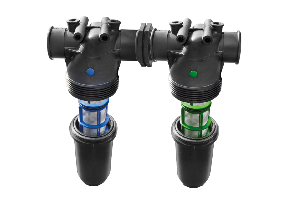 Központi szívóági szűrő és 1-2 központi nyomóági szűrő, fúvókaszűrők nélkül. A rendszer előnye, hogy a nyomásmérő a fúvókákon ténylegesen meglévő nyomást, nem pedig a fúvókaszűrők előtti nyomást mutatja. A központi szűrők karbantartása és tisztítása is sokkal egyszerűbb, mint a fúvókaszűrők esetében.